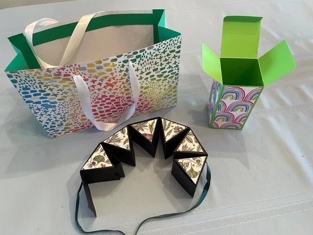 Fabulous Folds will use folded paper to make gift bags, boxes, and gift cards in a variety of unique patterns and shapes. Each person will create their version of the project.