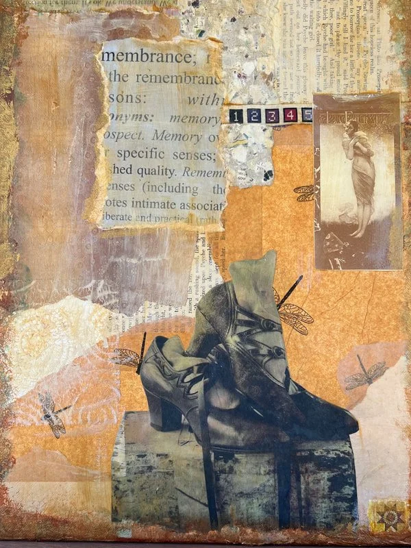 I love immersing myself in art and discovering the felicity and joyful spirit on canvas of everyday living whether it’s tap shoes, a season, or a dog of mine. Handmade books are also a passion for me. Although I have been exploring, expressing, and developing myself through the art making process all my life, I have discovered a new awareness of just how my art reflects my personal “joie de vivre”.