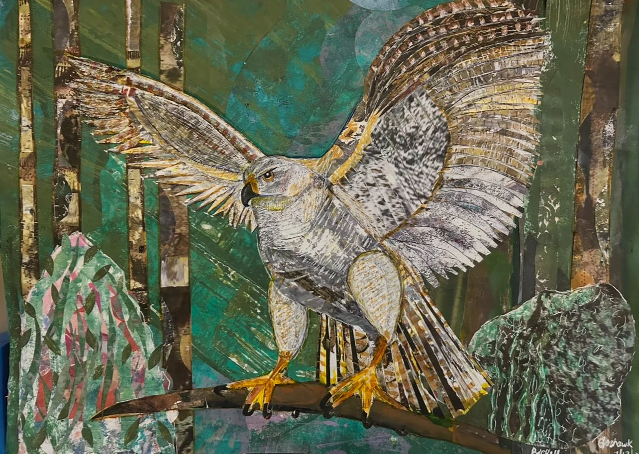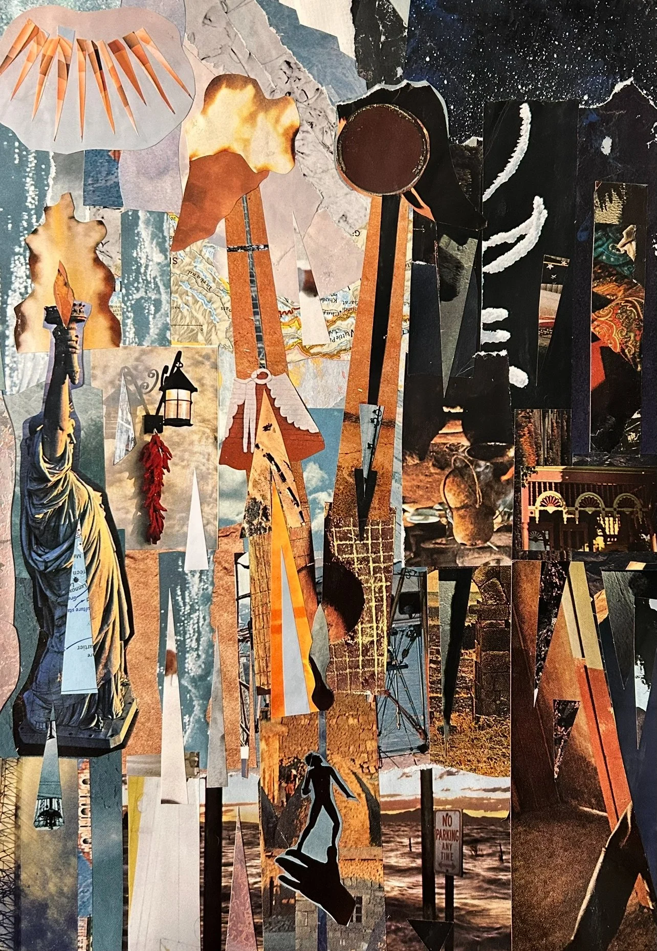 Artist Bio / Artist Statement: I began making collage art at the bidding of my therapist, and it proved to be a saving Grace in my life. I do paint my own papers for collage making, but I also cut up magazines.