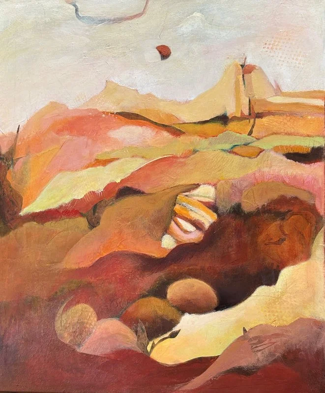 I create subject matter that often lives at the intersection of abstraction and landscape, which reflects the endless inspiration I find in nature. I can’t resist the joy I feel to encounter a fresh palette of luscious colors waiting in anticipation to be used.