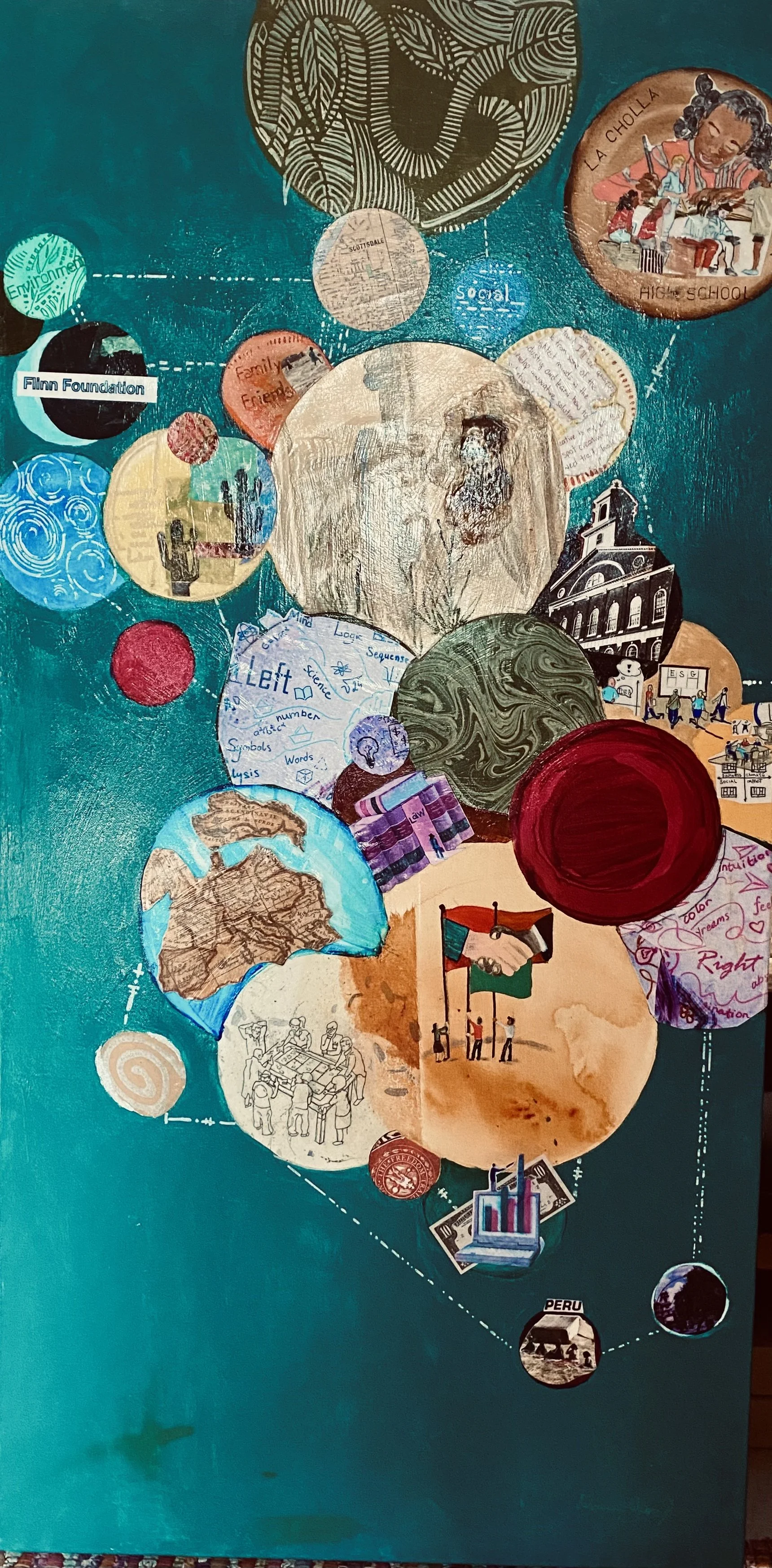 Social Entrepreneur in Action, Mixed Media Collage and Acrylic